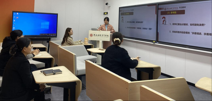 2025年10月29日上午,创新创业学院劳动教育教研室在研创空间开展每周例行集体磨课活动,本次活动围绕“专题三:弘扬劳动精神”理论课程设计及教案撰写展开,由教研室主任赵小芬主持,冯丹、马颖颖、张婉莹、陈晓琳四位教师共同参与磨课活动。
